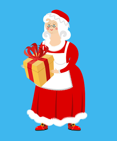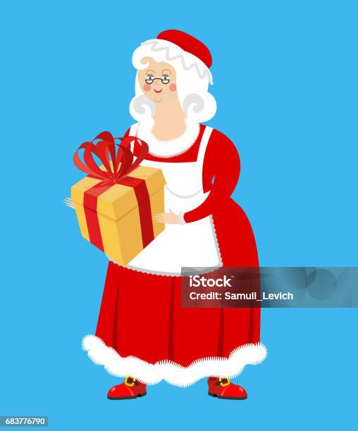 Mrs Claus En Cadeau Vrouw Van Santa Claus En Box Kerst Vrouw In